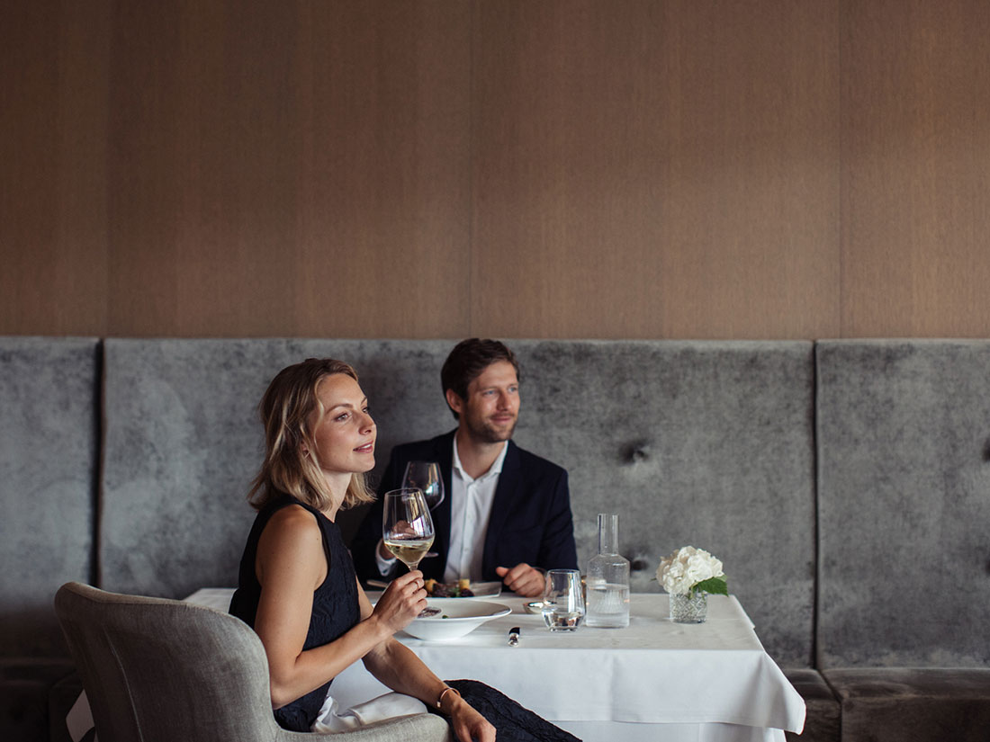 The à la carte lunch offers light, flavorful dishes and fresh salads, while the afternoon is sweetened with homemade pastries and refreshing scoops of artisanal gelato. All this is complemented by a prestigious selection of over 300 fine wines, best enjoyed on the panoramic terrace overlooking the stunning Merano landscape.