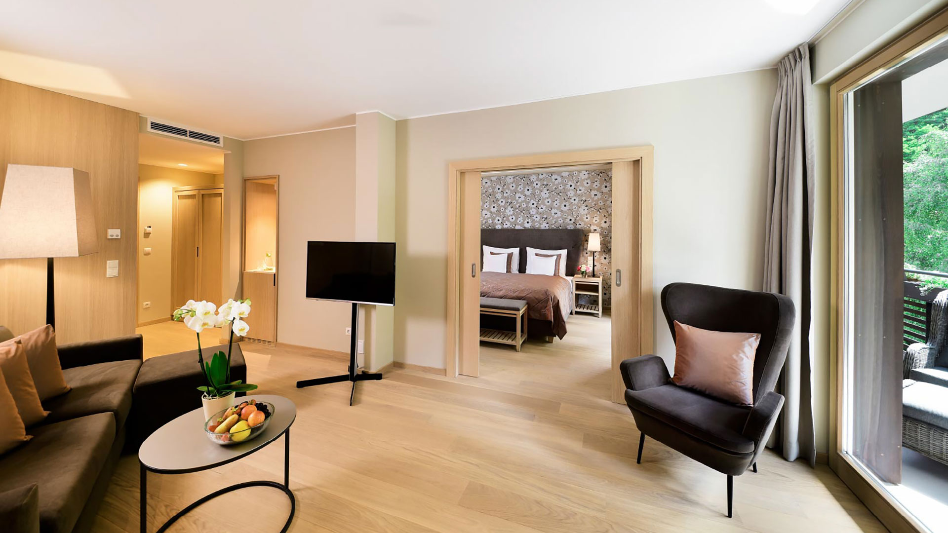 Le suite e camere di design, arredate con materiali naturali e affacciate su panorami mozzafiato, offrono un lusso discreto e avvolgente. Ogni risveglio è un sogno tra il profumo della natura e la luce dorata dell’Alto Adige.